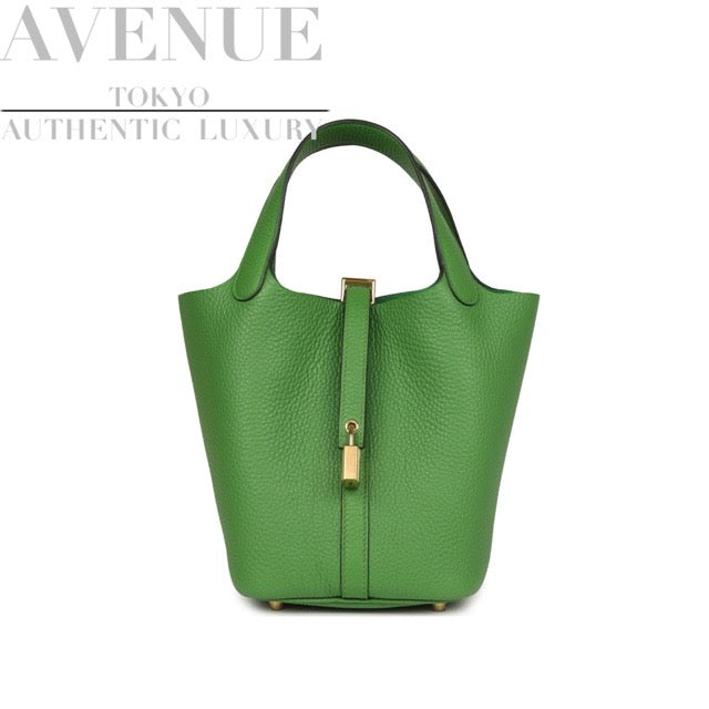 HERMES PICOTIN LOCK 18 PM VERT YUCCA TAURILLON CLEMENCE GOLD HARDWARE
