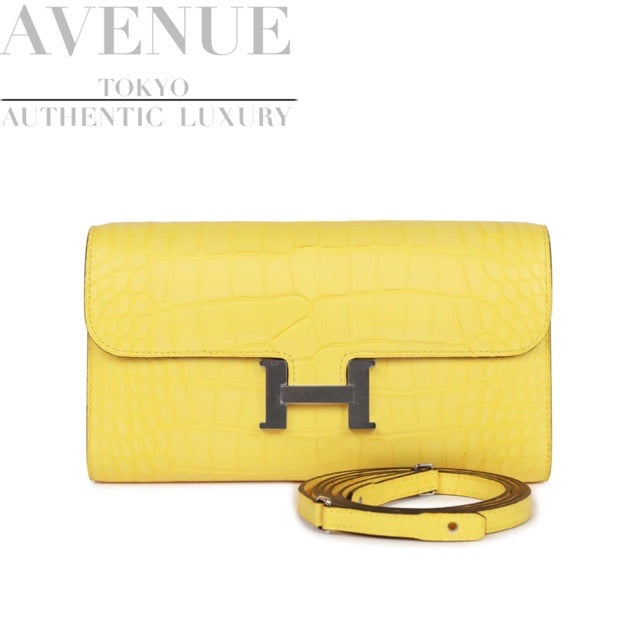 HERMES CONSTANCE LONG WALLET TO GO TOUCH MIMOSA MATTE ALLIGATOR SILVER HARDWARE