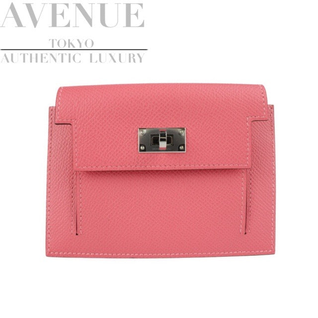 HERMES KELLY POCKET COMPACT WALLET ROSE AZALEE EPSOM SILVER HARDWARE