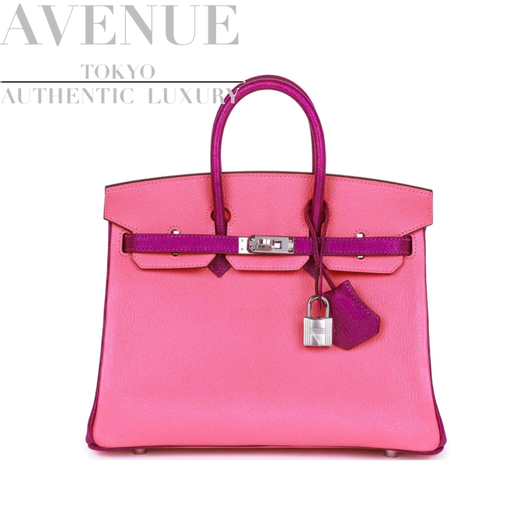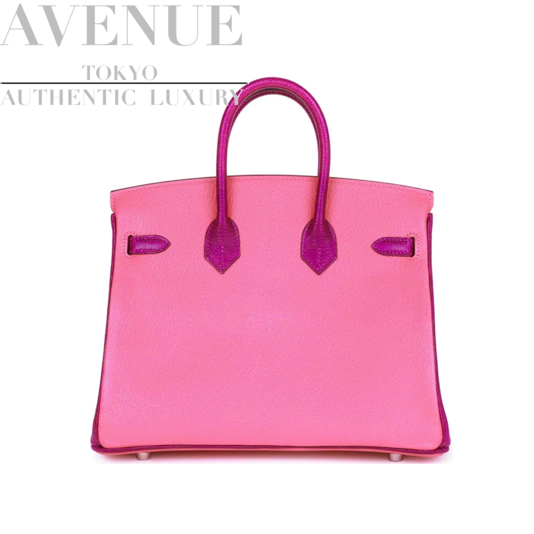 HERMES BIRKIN 25 SPECIAL ORDER BI-COLOR ROSE LIPSTICK ANEMONE CHEVRE MYSORE SILVER HARDWARE HSS