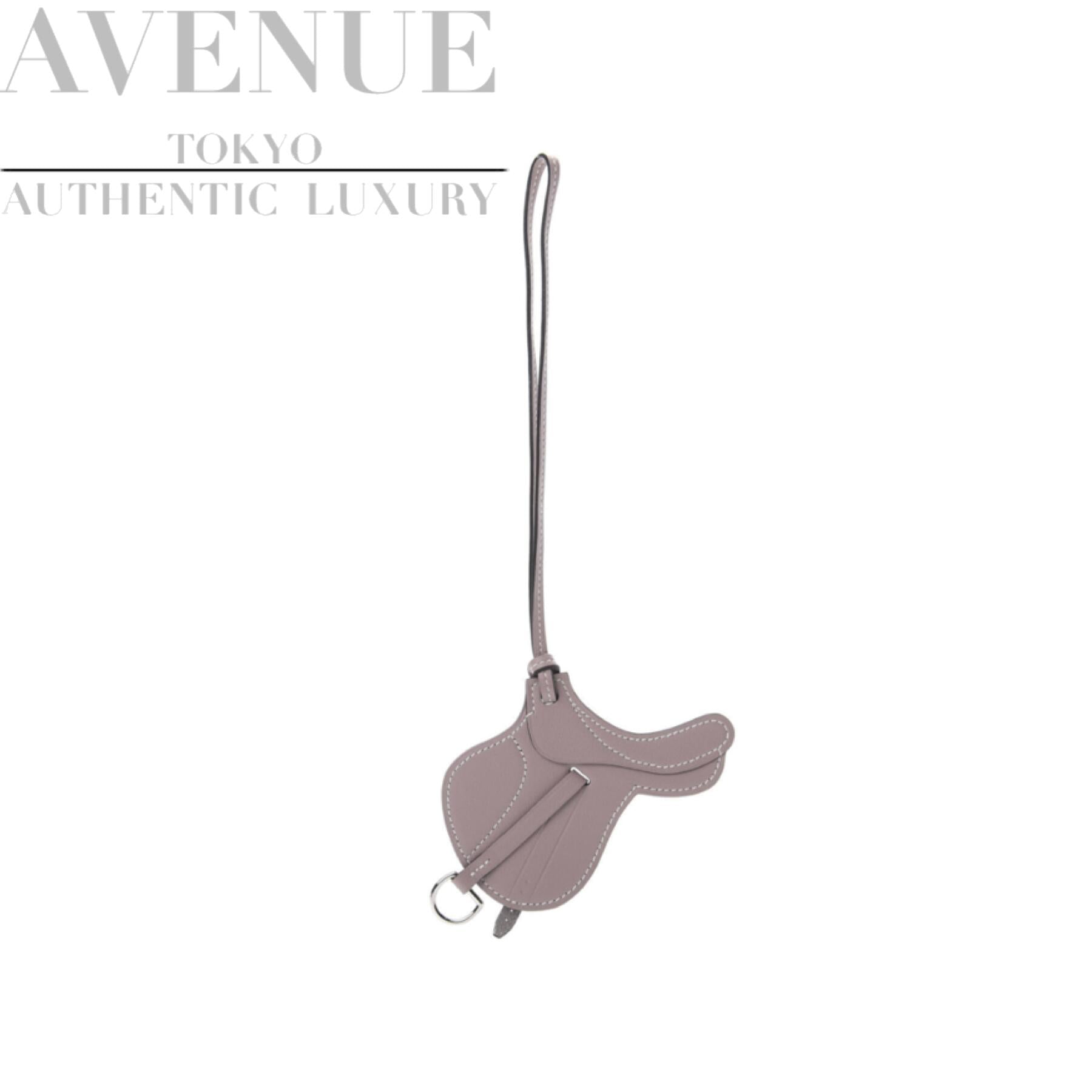 HERMES PADDOCK SELLE SADDLE BAG CHARM GLYCINE SWIFT SILVER HARDWARE