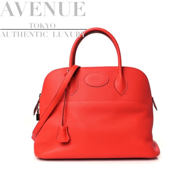 HERMES BOLIDE 35 ROUGE PIVOINE TAURILLON CLEMENCE SILVER HARDWARE