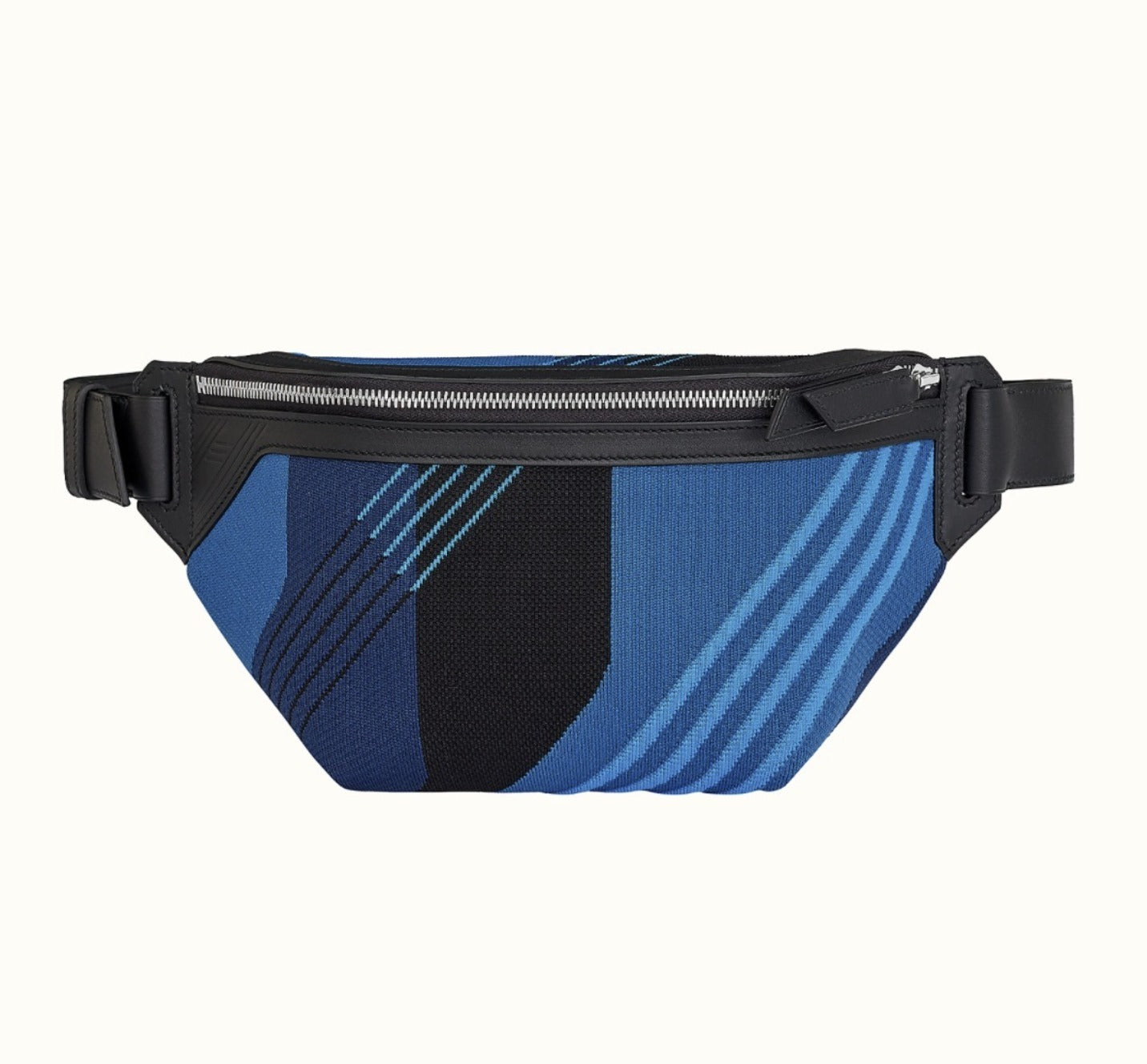 HERMES CITYSLIDE MEN'S BELT BAG WAIST BAG BLACK BLEU CANVAS AND LEATHER SILVER HARDWARE