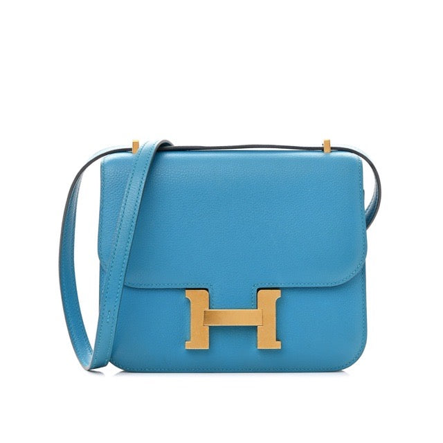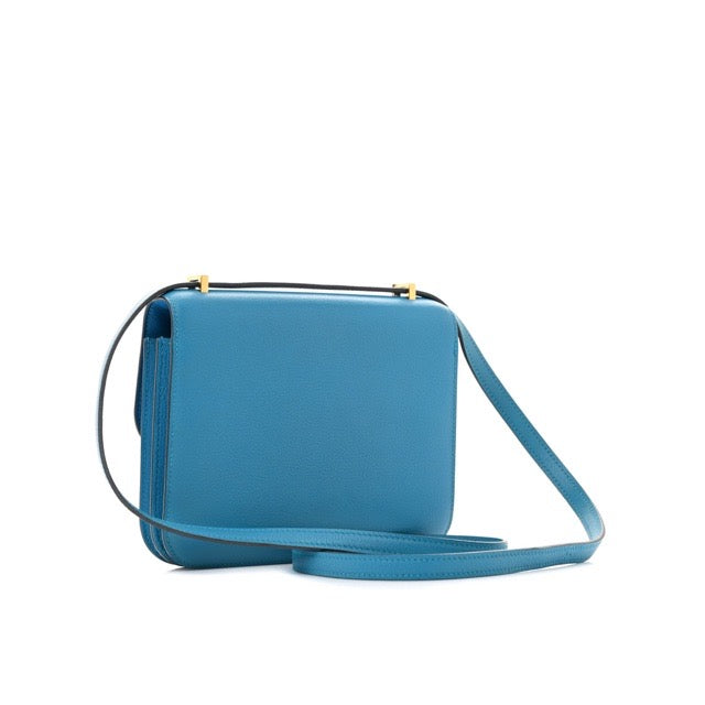 HERMES MINI CONSTANCE 18 BLEU FRIDA EVERCOLOR GOLD HARDWARE