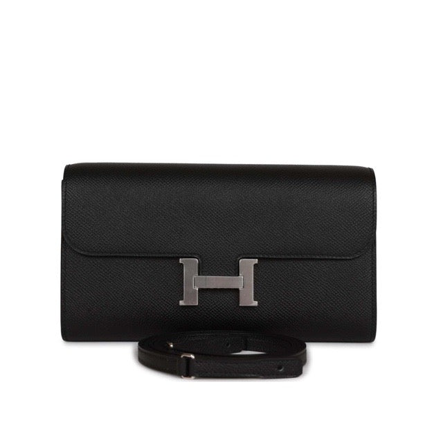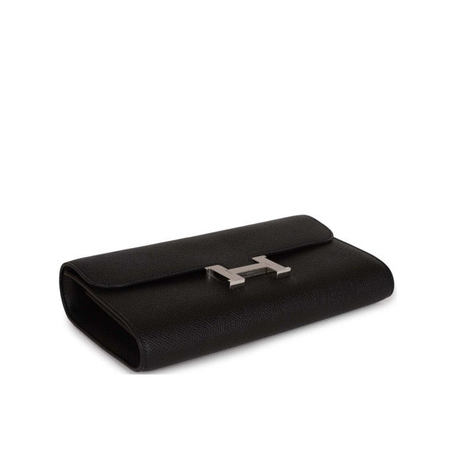 HERMES CONSTANCE WALLET TO GO LONG WALLET BLACK EPSOM SILVER HARDWARE
