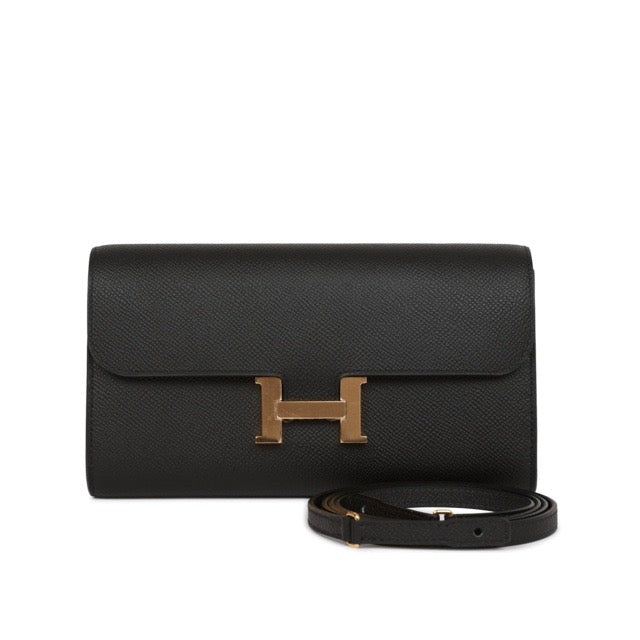 HERMES CONSTANCE WALLET TO GO LONG WALLET BLACK EPSOM GOLD HARDWARE