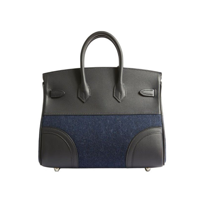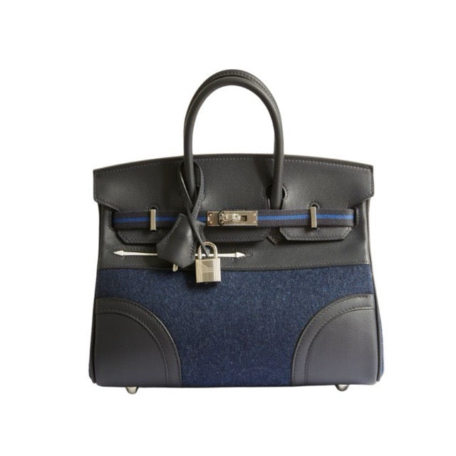 HERMES BIRKIN 25 GO TEAM MULTICOLOR CABAN BLEU NUIT BLACK FELT SWIFT SILVER HARDWARE