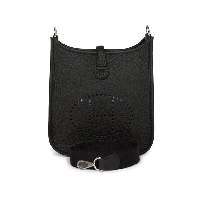 HERMES MINI EVELYNE TPM BLACK TAURILLON CLEMENCE SILVER HARDWARE