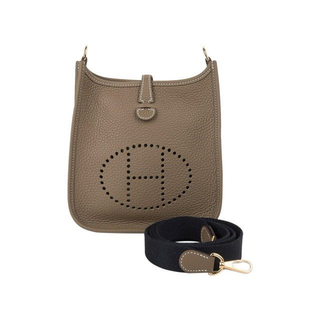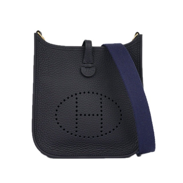 HERMES MINI EVELYNE TPM AMAZONE SHOULDER BAG ETOUPE BLEU INDIGO TAURILLON CLEMENCE GOLD HARDWARE