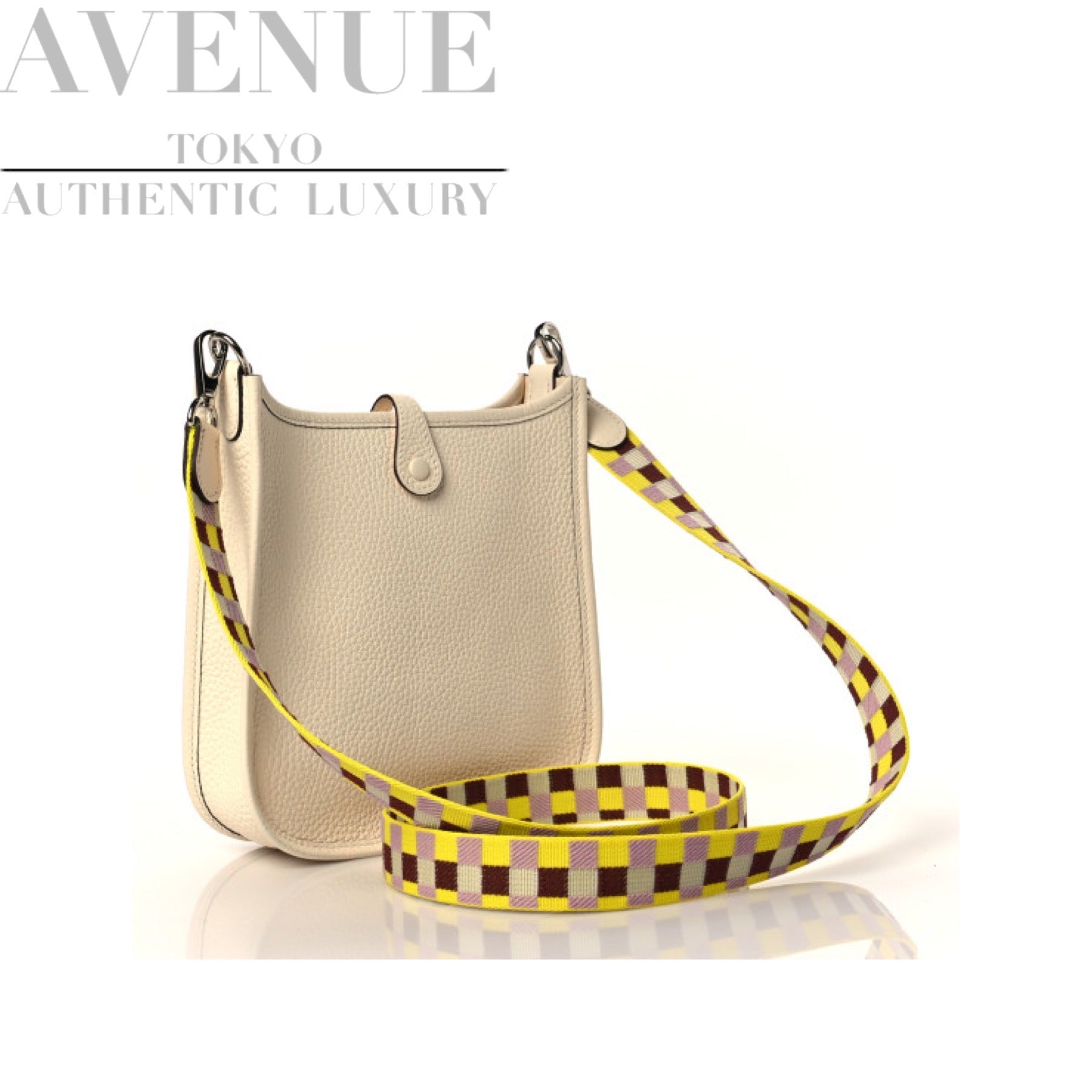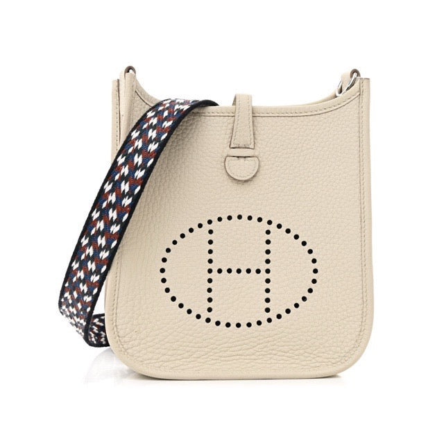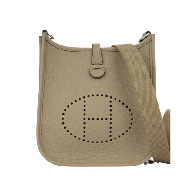HERMES MINI EVELYNE TPM SHOULDER BAG BEIGE MARFA TAURILLON CLEMENCE SILVER HARDWARE