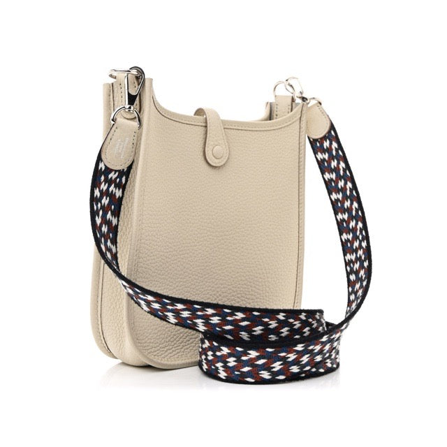 HERMES MINI EVELYNE TPM ZIGZAG SANGLES SHOULDER BAG BETON TAURILLON CLEMENCE SILVER HARDWARE