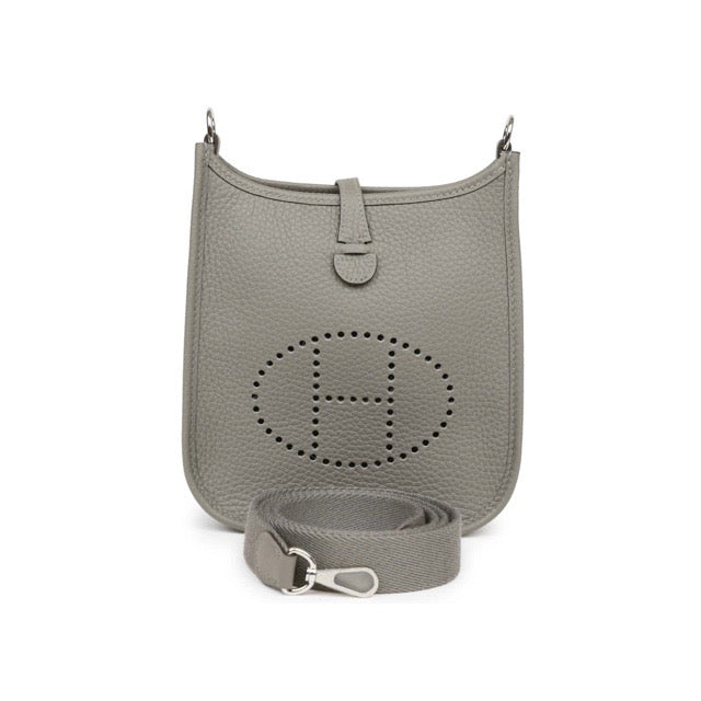 HERMES MINI EVELYNE TPM SHOULDER BAG GRIS PALE TAURILLON CLEMENCE SILVER HARDWARE