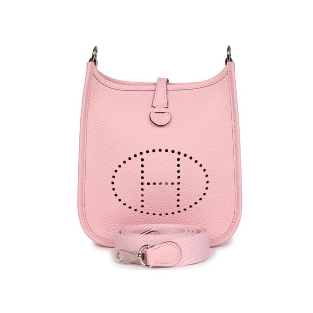 HERMES MINI EVELYNE TPM ROSE SAKURA TAURILLON CLEMENCE SILVER HARDWARE
