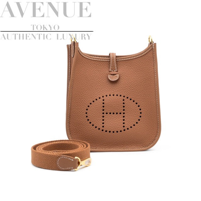 HERMES MINI EVELYNE TPM SHOULDER BAG GOLD TAURILLON CLEMENCE GOLD HARDWARE