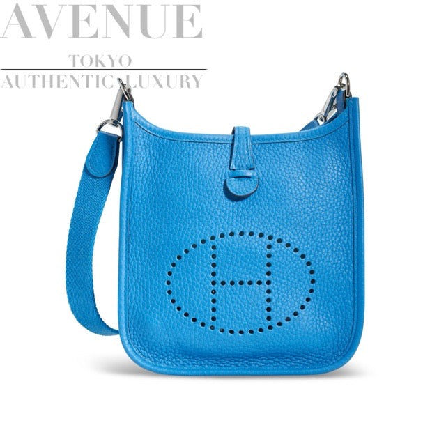 HERMES MINI EVELYNE TPM BLUE ZANZIBAR TAURILLON CLEMENCE SILVER HARDWARE