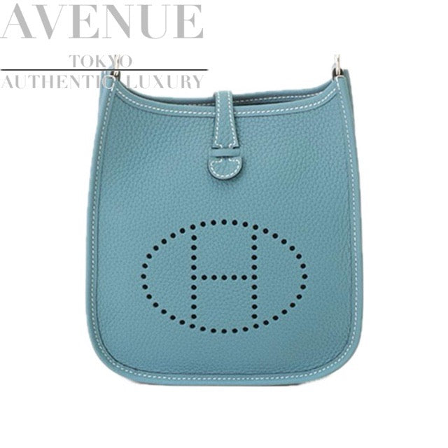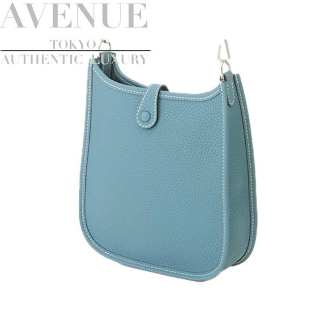 HERMES MINI EVELYNE TPM AMAZONE SHOULDER BAG BLEU PALE ETAIN TAURILLON CLEMENCE SILVER HARDWARE