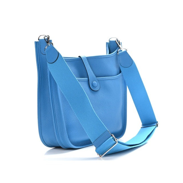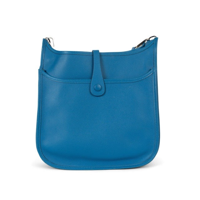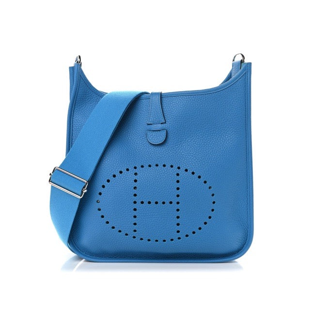 HERMES MINI EVELYNE TPM BLUE ZANZIBAR TAURILLON CLEMENCE SILVER HARDWARE