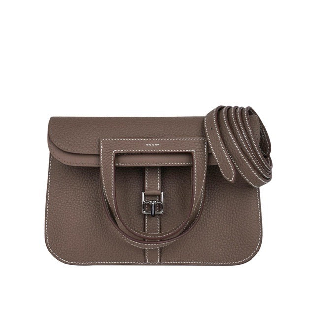 HERMES HALZAN 25 ETOUPE TAURILLON CLEMENCE SILVER HARDWARE