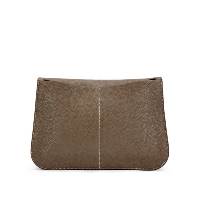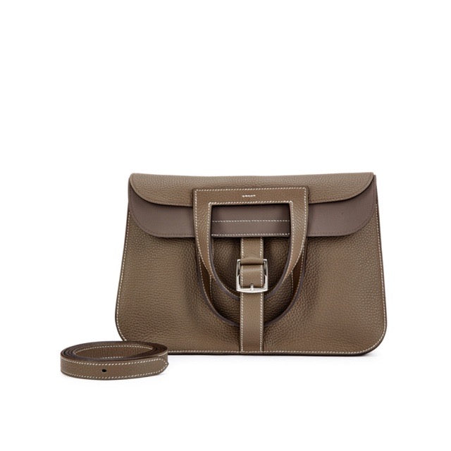 HERMES HALZAN 31 GM ETOUPE TAURILLON CLEMENCE SILVER HARDWARE