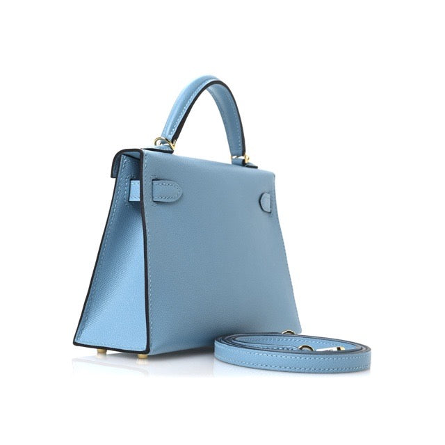 HERMES KELLY MINI 2 SELLIER 20 CELESTE EPSOM GOLD HARDWARE