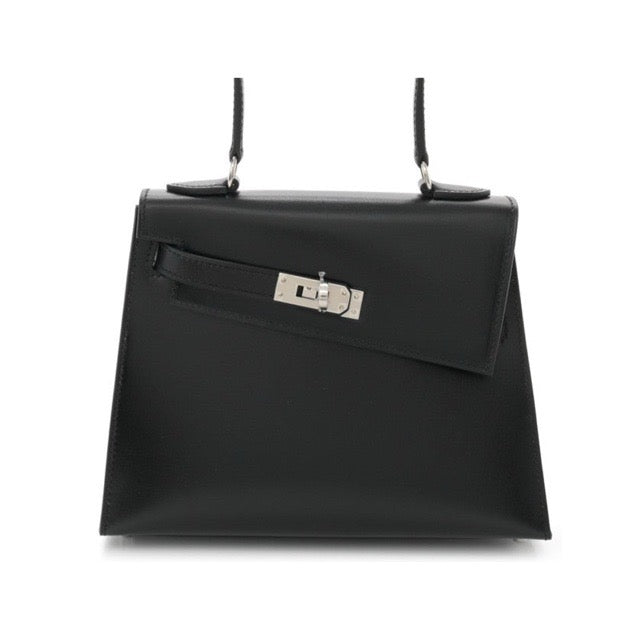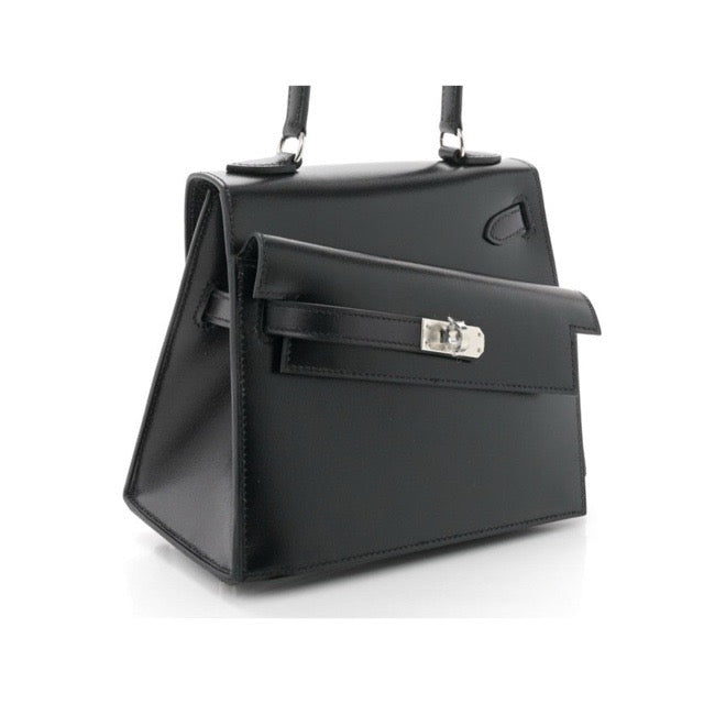 HERMES KELLY EN DESORDRE 20 SELLIER BLACK BOX CALFSKIN SILVER HARDWARE