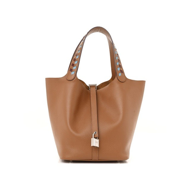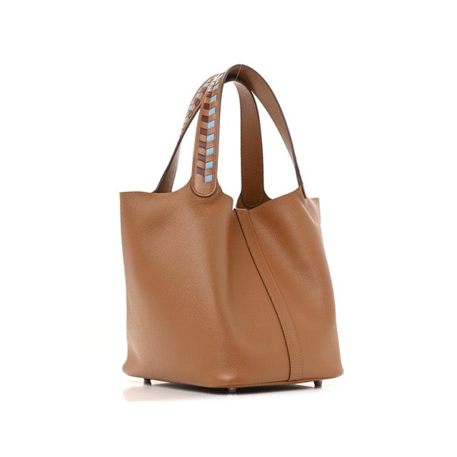 HERMES PICOTIN LOCK 22 MM TRESSAGE DE CUIR GOLD BLEU DU NORD ROUGE H EPSOM SILVER HARDWARE