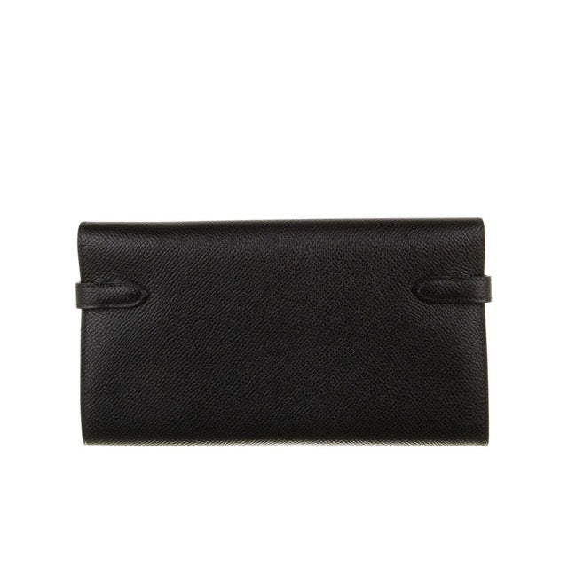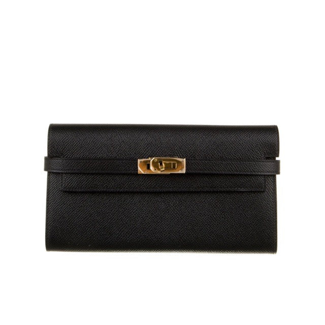 HERMES KELLY LONG WALLET BLACK EPSOM GOLD HARDWARE