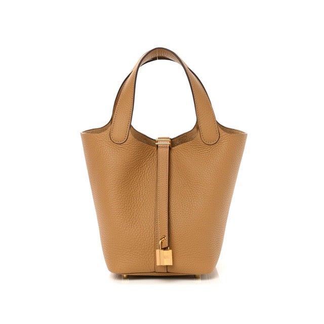 HERMES PICOTIN LOCK 18 PM BISCUIT TAURILLON CLEMENCE GOLD HARDWARE