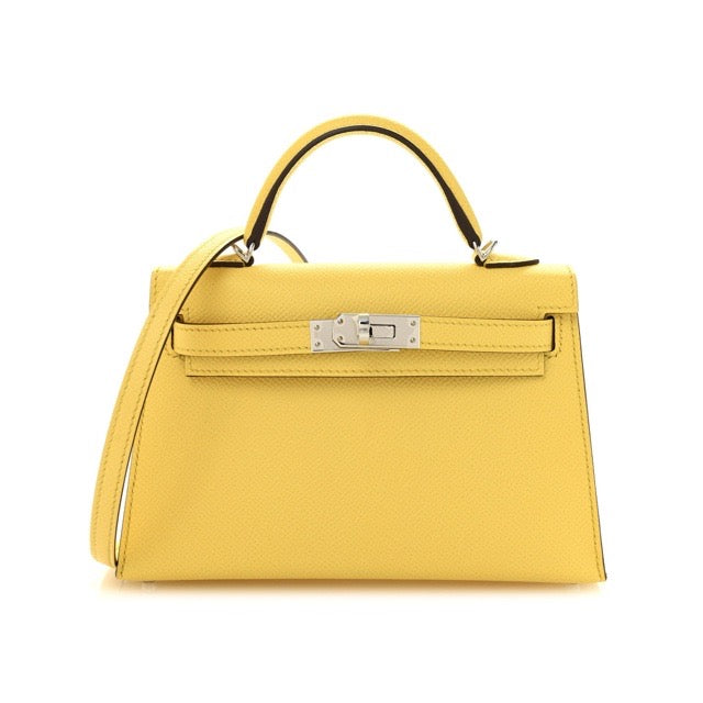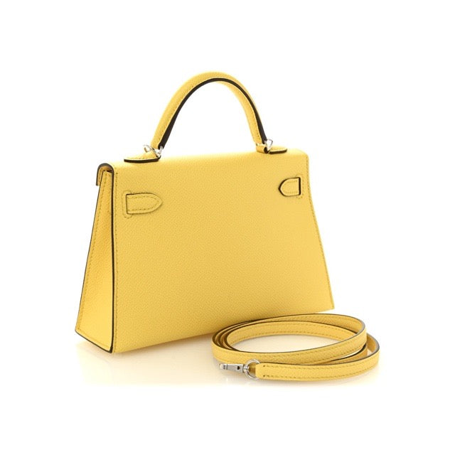 HERMES MINI KELLY 2 SELLIER 20 JAUNE MANGO EPSOM SILVER HARDWARE