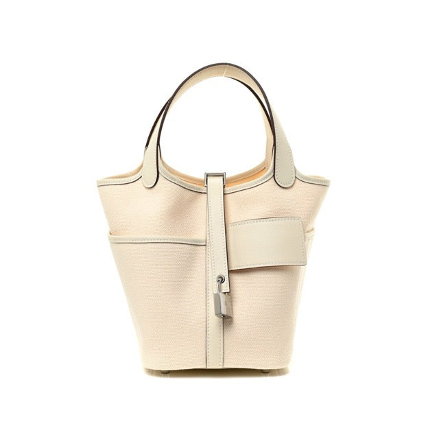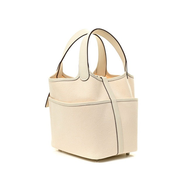 HERMES PICOTIN LOCK PM 18 CARGO NATA TOILE SWIFT SILVER HARDWARE