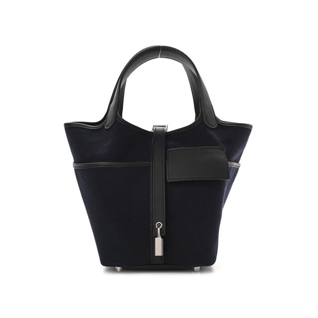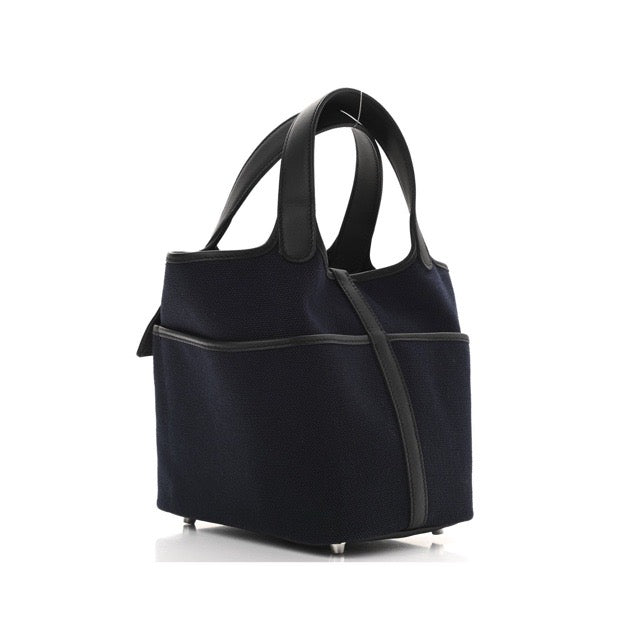 HERMES PICOTIN LOCK 18 PM CARGO BLEU MARINE BLACK TOILE SWIFT SILVER HARDWARE