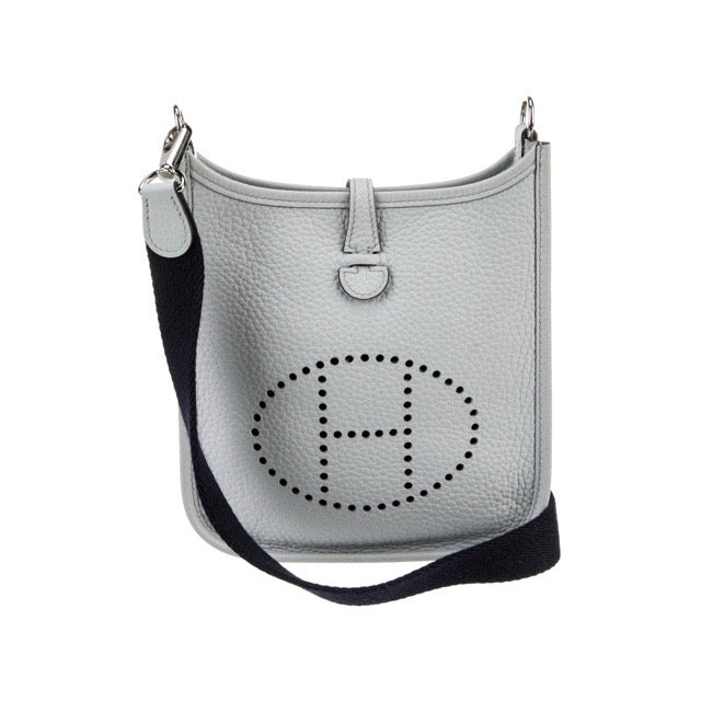 HERMES MINI EVELYNE TPM AMAZONE BLEU PALE BLEU INDIGO TAURILLON CLEMENCE SILVER HARDWARE