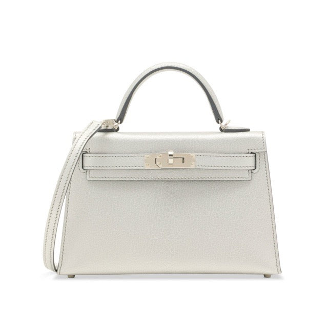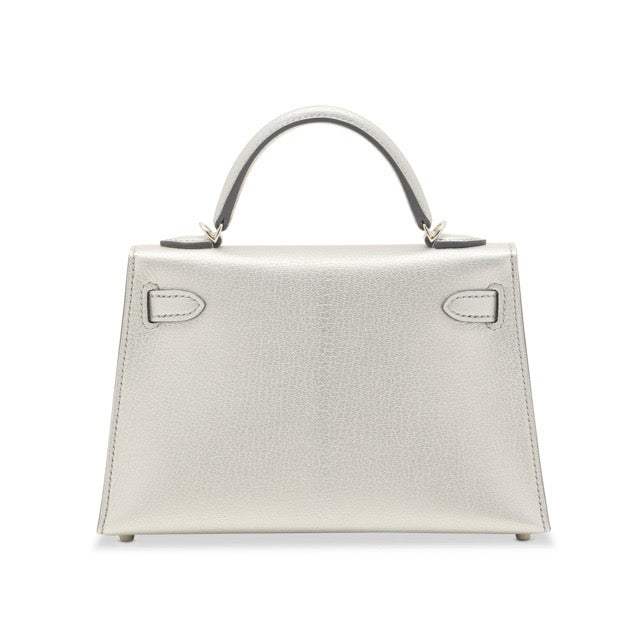 HERMES MINI KELLY 2 SELLIER 20 LIMITED EDITION OLYMPIC COMMEMORATIVE ARGENT METALLIC SILVER CHEVRE CHAMKILA SILVER HARDWARE