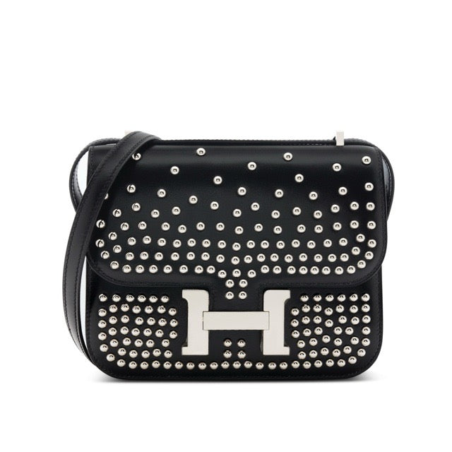 HERMES MINI CONSTANCE 18 MIRROR CLOUTE BLACK BOX CALFSKIN SILVER HARDWARE