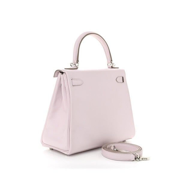 HERMES KELLY 25 RETOURNE MAUVE PALE SWIFT SILVER HARDWARE