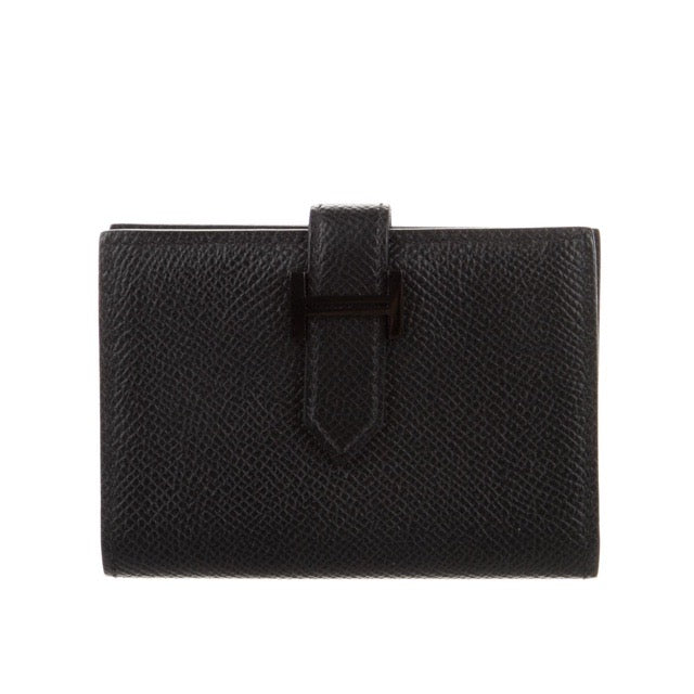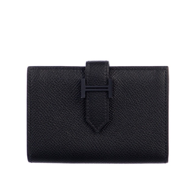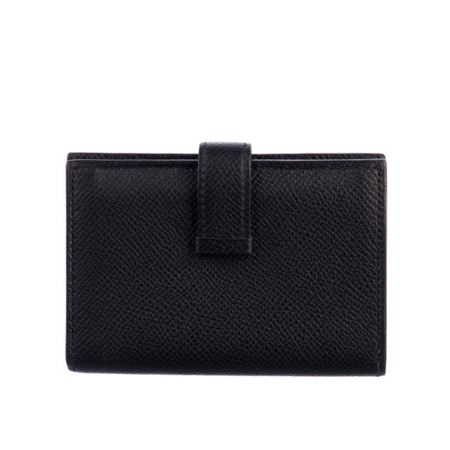 HERMES BEARN MONOCHROME CARD HOLDER WALLET BLACK EPSOM BLACK HARDWARE
