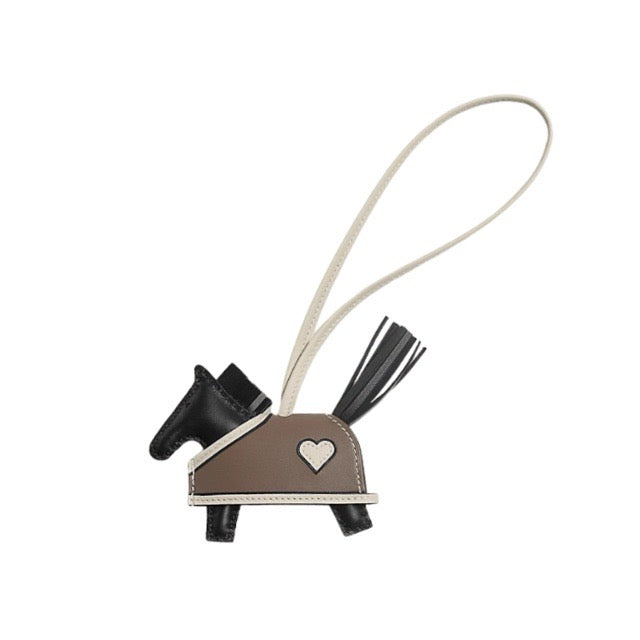 エルメス ロデオ ロベオ クール PM バッグチャーム ブラック クレ エトゥープ アニョーミロ ラムスキン HERMES MILO LAMBSKIN RODEO ROBEO COEUR PM BAG CHARM BLACK CRAIE ETOUPE