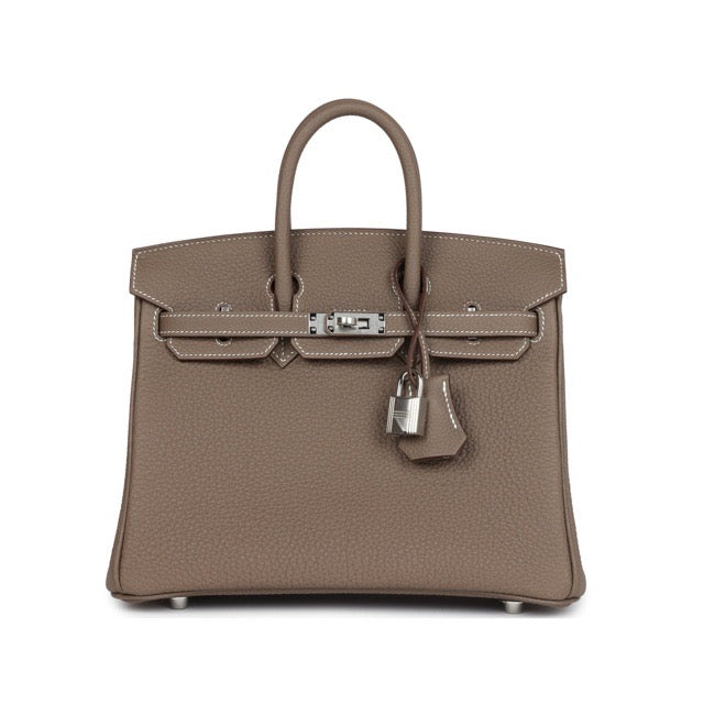 HERMES BIRKIN 25 ETOUPE TOGO SILVER HARDWARE