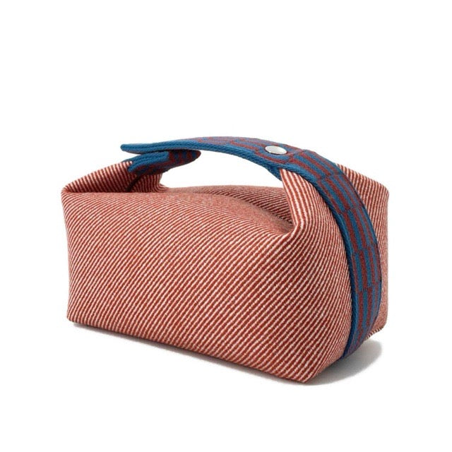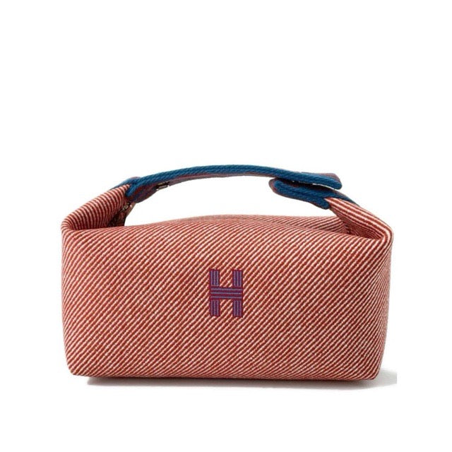 HERMES BRIDE-A-BRAC PM POUCH ORANGE BLEU TOILE CANVAS WOOL SILVER HARDWARE