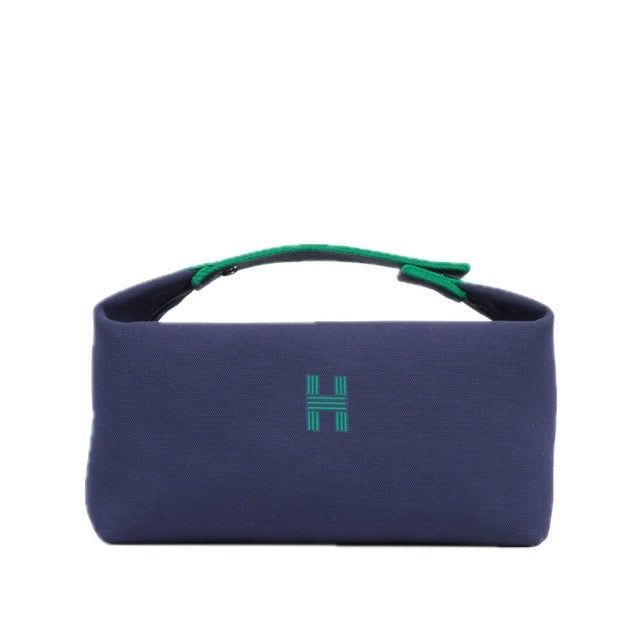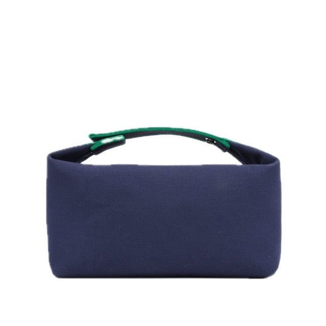 HERMES BRIDE-A- BRAC PM POUCH BLEU NAVY TOILE CANVAS SILVER HARDWARE