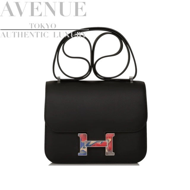 HERMES CONSTANCE 18 BLACK SWIFT MARBLED SILVER HARDWARE