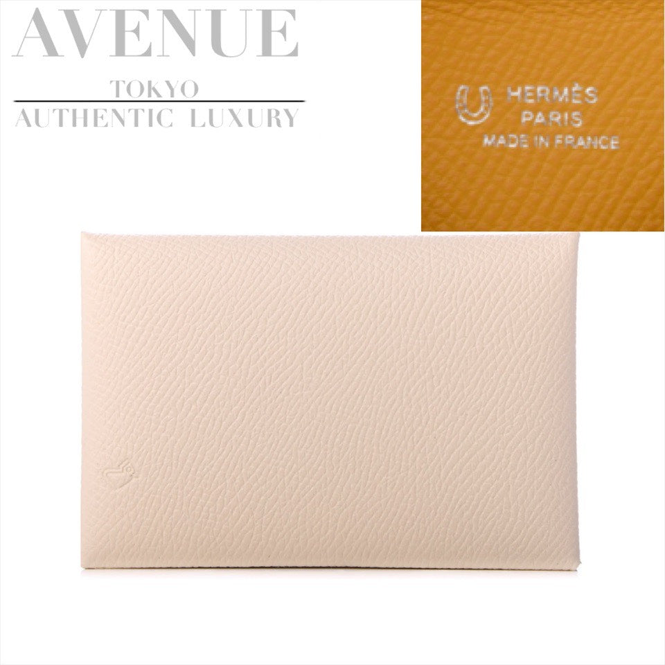 HERMES CALVI CARD CASE PERSONAL ORDER CRAIE JAUNE AMBRE EPSOM SILVER HARDWARE HSS