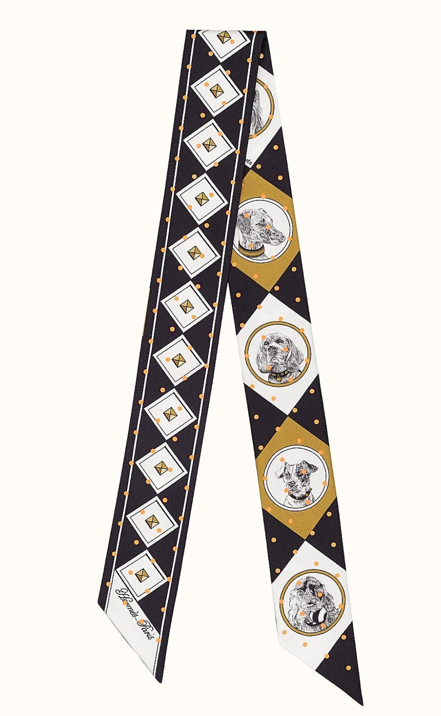 HERMES TWILLY COLLIERS ET CHIENS PLUMETIS NOIR/GOLD/BLANC SILK