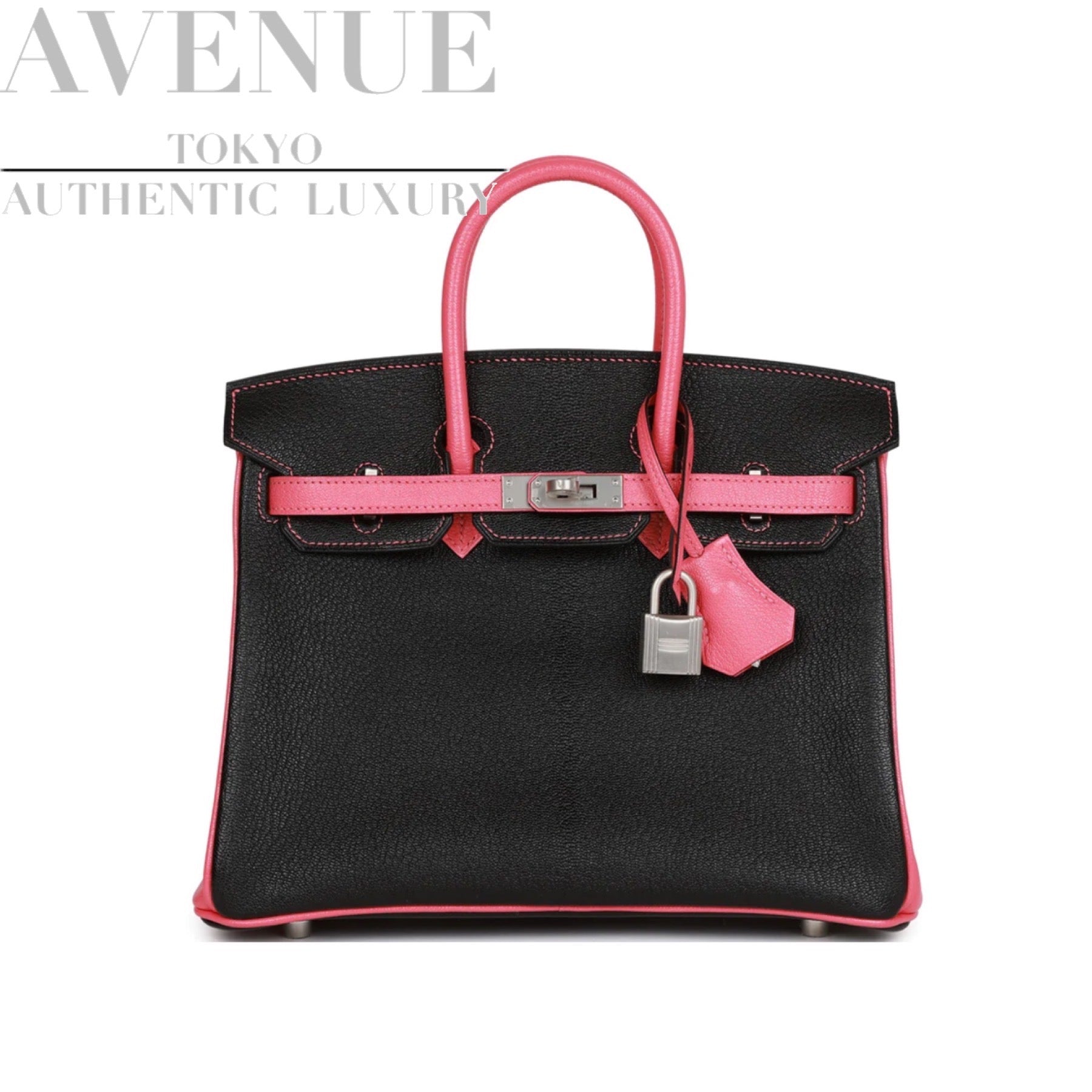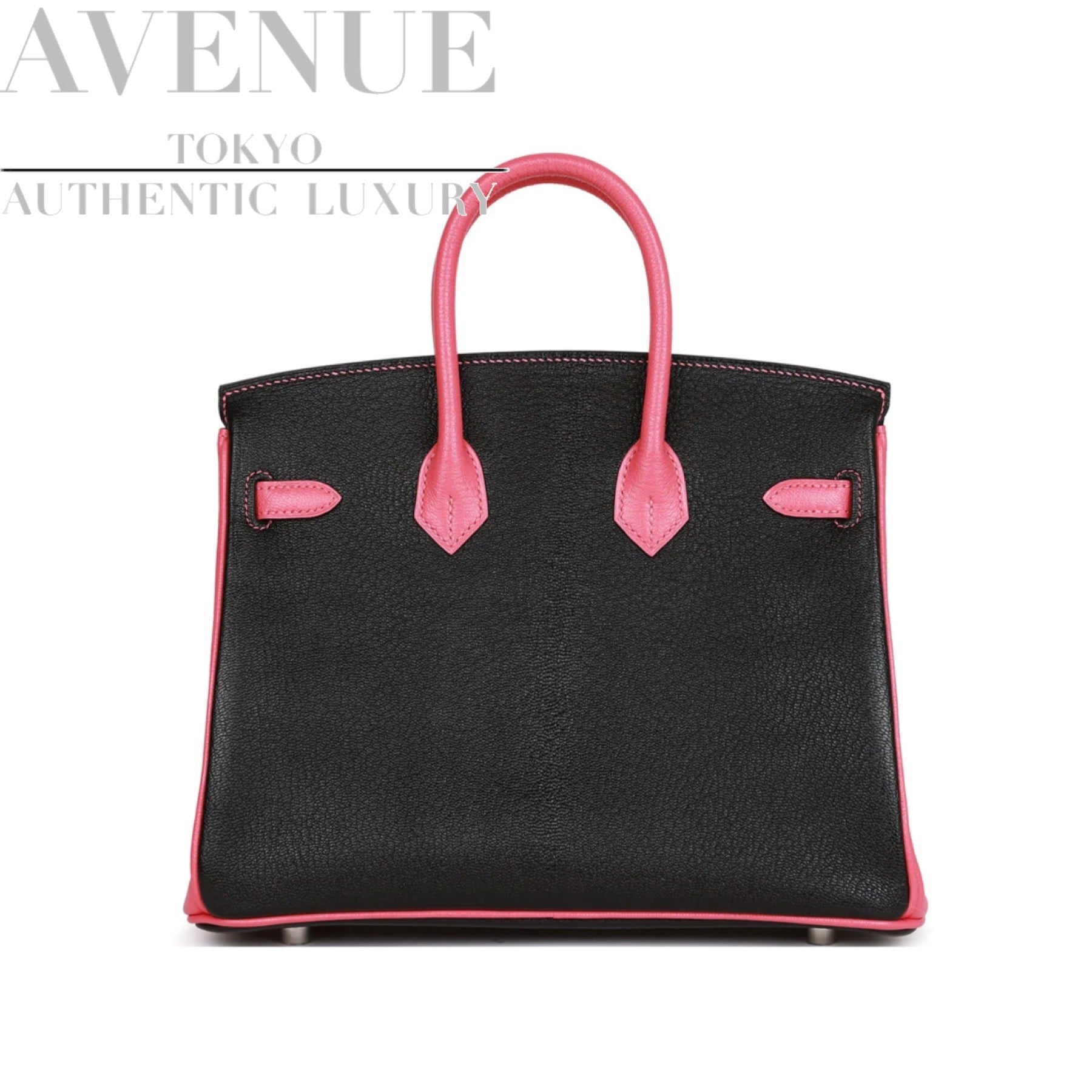 HERMES BIRKIN 25 SPECIAL ORDER BI-COLOR BLACK ROSE AZALEE CHEVRE MYSORE BRUSHED SILVER HARDWARE HSS