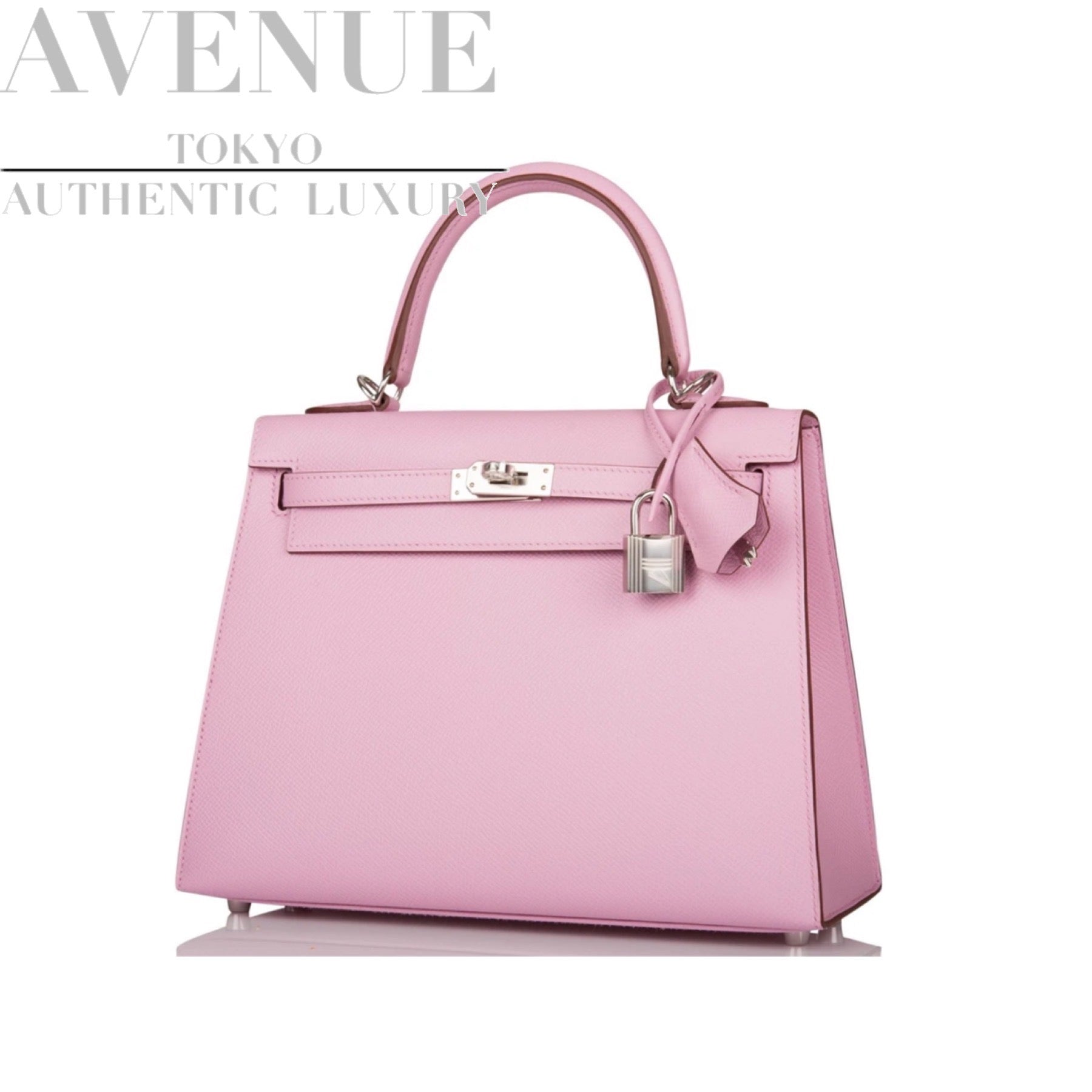 HERMES KELLY RETOURNE 32 BUBBLEGUM 5P PINK GRIS TOURTERELLE CLEMENCE BRUSHED SILVER HARDWARE HSS