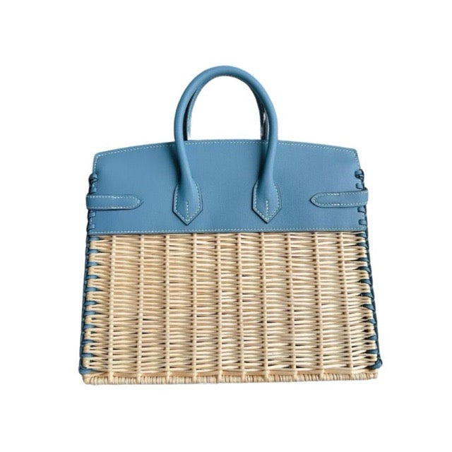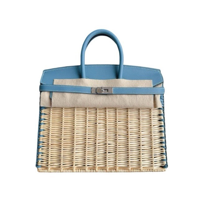 HERMES BIRKIN 25 PICNIC BASKET NEW BLEU JEAN SWIFT WICKER SILVER HARDWARE