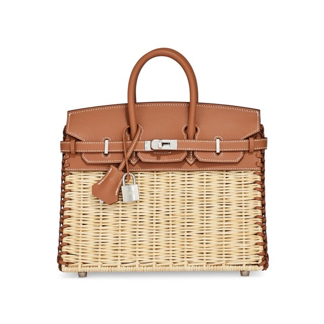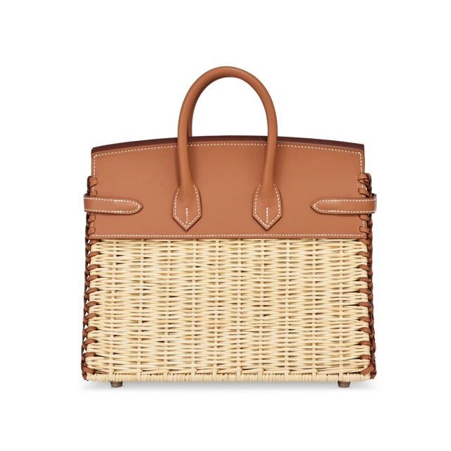 HERMES BIRKIN 25 PICNIC BASKET GOLD SWIFT WICKER SILVER HARDWARE