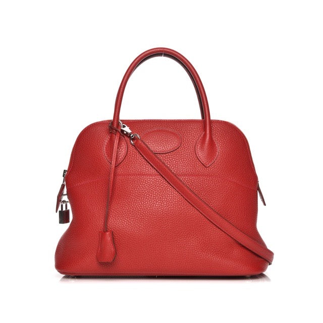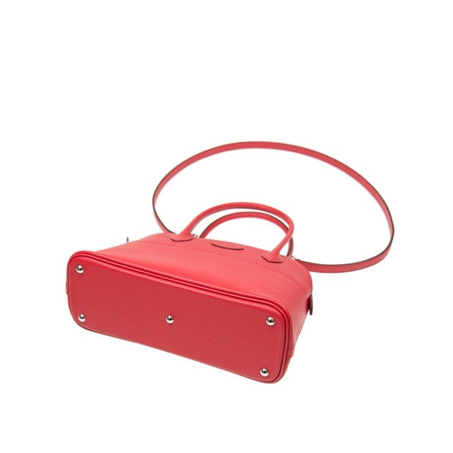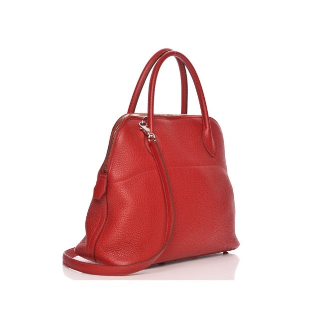 HERMES BOLIDE 31 ROUGE CASAQUE TAURILLON CLEMENCE SILVER HARDWARE