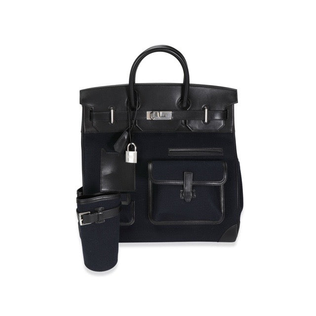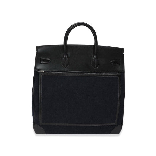 HERMES BIRKIN 40 CARGO HAUTE COUTURE HAC BLEU MARINE TOILE CANVAS SWIFT SILVER HARDWARE