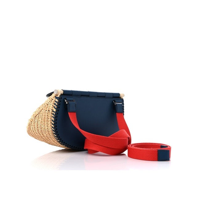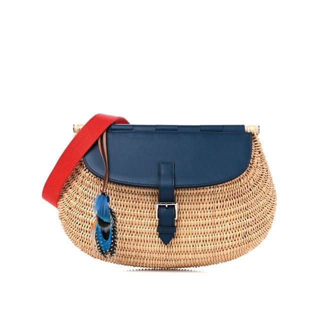 HERMES FISHING BASKET PICNIC BASKET SHOULDER BAG BLEU DE PRUSSE SWIFT WICKER SILVER HARDWARE